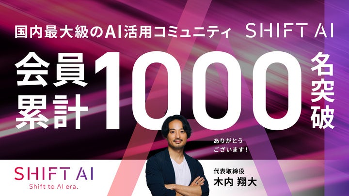 この度、SHIFT AIのコミュニティ会員数が累計1,000名を突破しました。SHIFT AI主催者として、皆さんのAIに対する関心と熱意が、私たちをここまで導いてくれたことに深く感謝しています。
