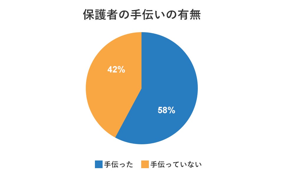 調査結果によると、58%の保護者が子どもの読書感想文作成を手伝っています。次のグラフは、読書感想文で保護者がサポートしている内容をまとめたものです。