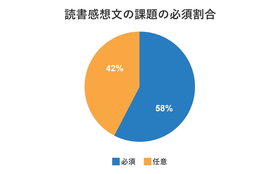 調査結果によると、読書感想文が夏休みの必須宿題であると答えた生徒は全体の約58%でした。この結果から、半数以上の生徒が通う学校で読書感想文が夏休みの必須課題であることが分かります。