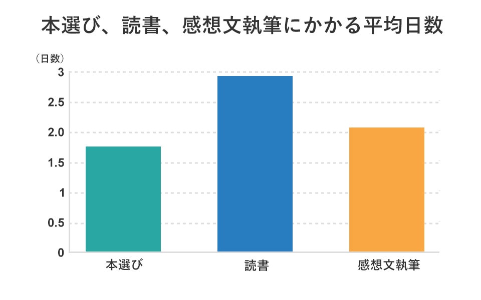 読書感想文は、まず題材とする本を選ぶことから始めます。その後、本を読み、感想文にとりかかるという流れが一般的ですが、では本選びから執筆完了までどのくらいの日数がかかるのでしょうか。それぞれの調査結果はこちらです。