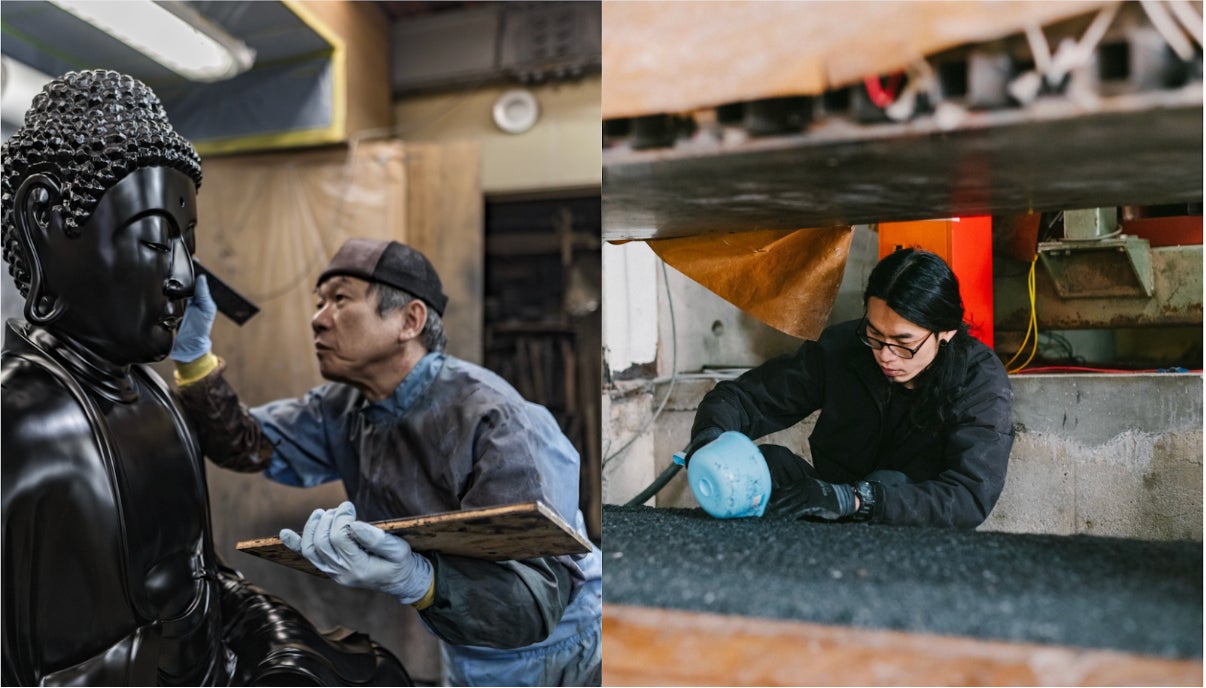さらに、竹正は職人文化を支える取り組みも積極的に行っています。若手職人の収入向上やキャリア支援を通じて、技術の継承と事業の持続可能性を実現。また、尾張仏具の生産を支えてきた「水の道」や、伊勢湾を中心とした経済圏の歴史を背景に、地域の経済や文化を守っています。伝統工芸と現代技術の融合を目指し、東海地域の域を超えて、日本のものづくり文化の発展にも貢献しています。