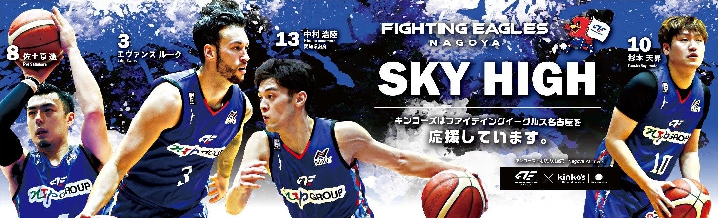 キンコーズ・伏見店では、屋内外に選手たちの躍動感あふれる写真を活かしたFE名古屋オリジナルデザインの装飾を行い、名古屋エリアの盛り上げを目指します。