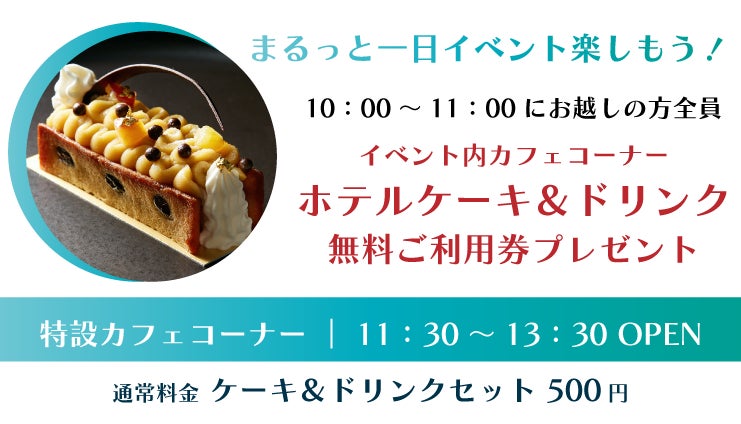 ⇒ イベント内カフェコーナー「ホテルケーキ&ドリンク 無料ご利用券」プレゼント