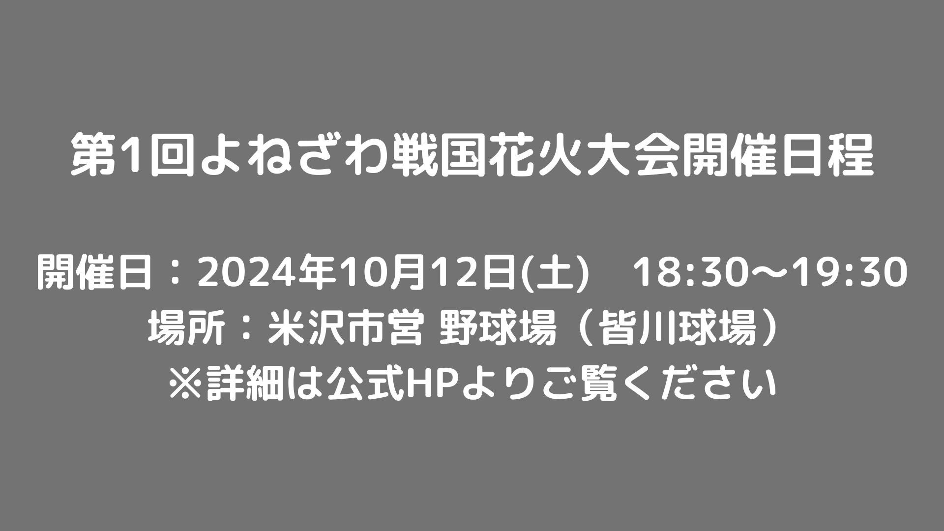 【山形県米沢市】10/12(土) 第1回よねざわ戦国花火大会開催決定!「秋澄花火」×「戦国」×「エンターテイメント」で地域を盛り上げる、新しい花火大会が始まる!