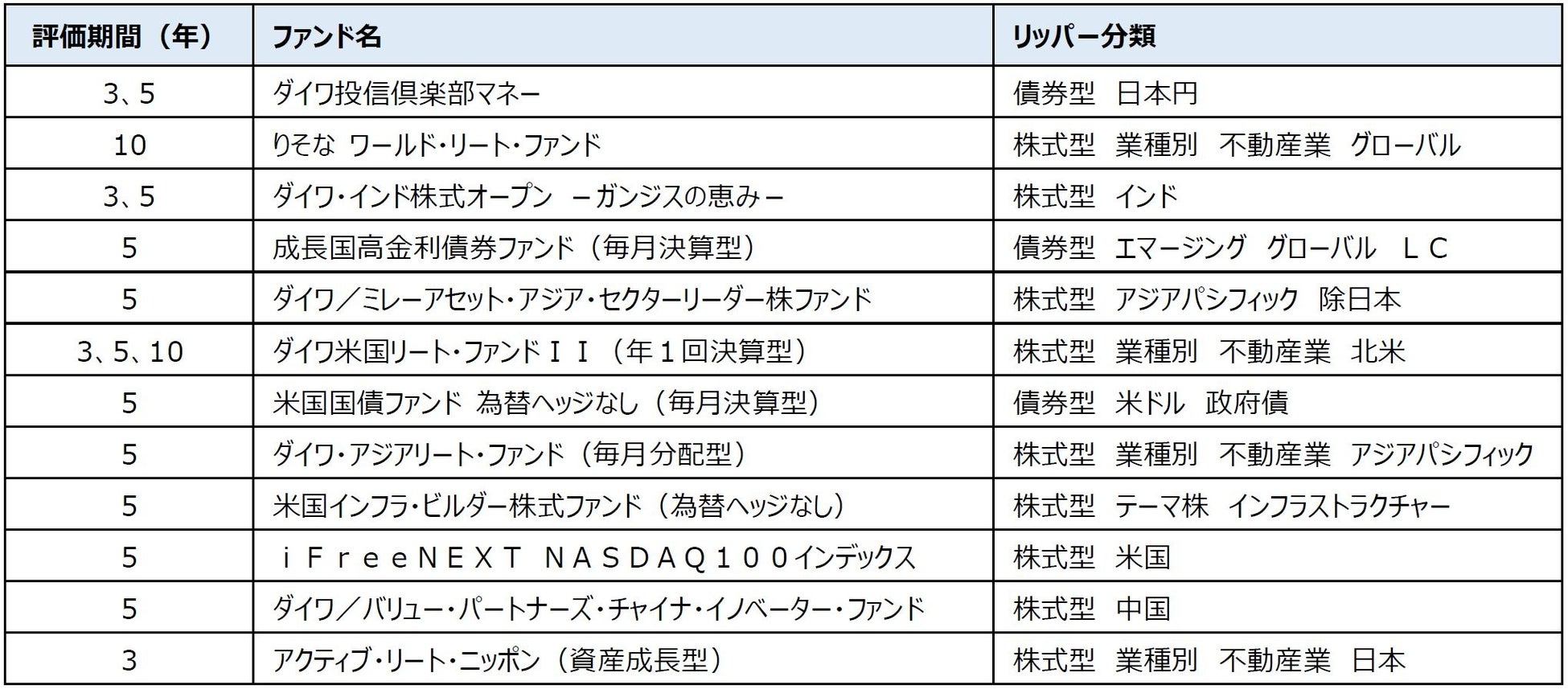 ※上記は過去の一定期間の実績が評価されたものであり、将来の運用成果を示唆・保証するものではありません。