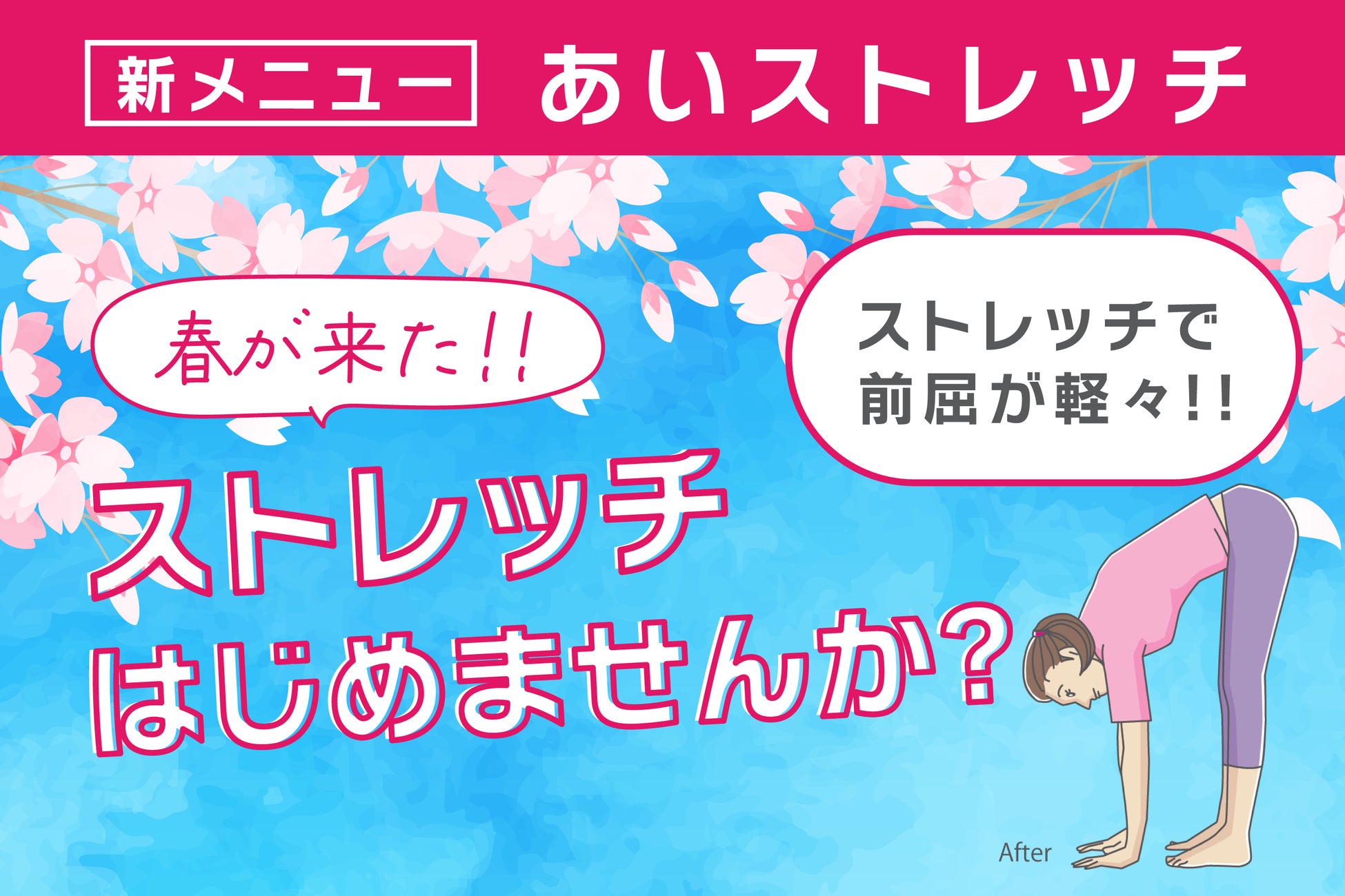 4/1(月)から、「あい鍼灸院・接骨院」の以下の店舗限定で、新たなストレッチメニュー、柔軟性向上「あいストレッチ」が登場します。