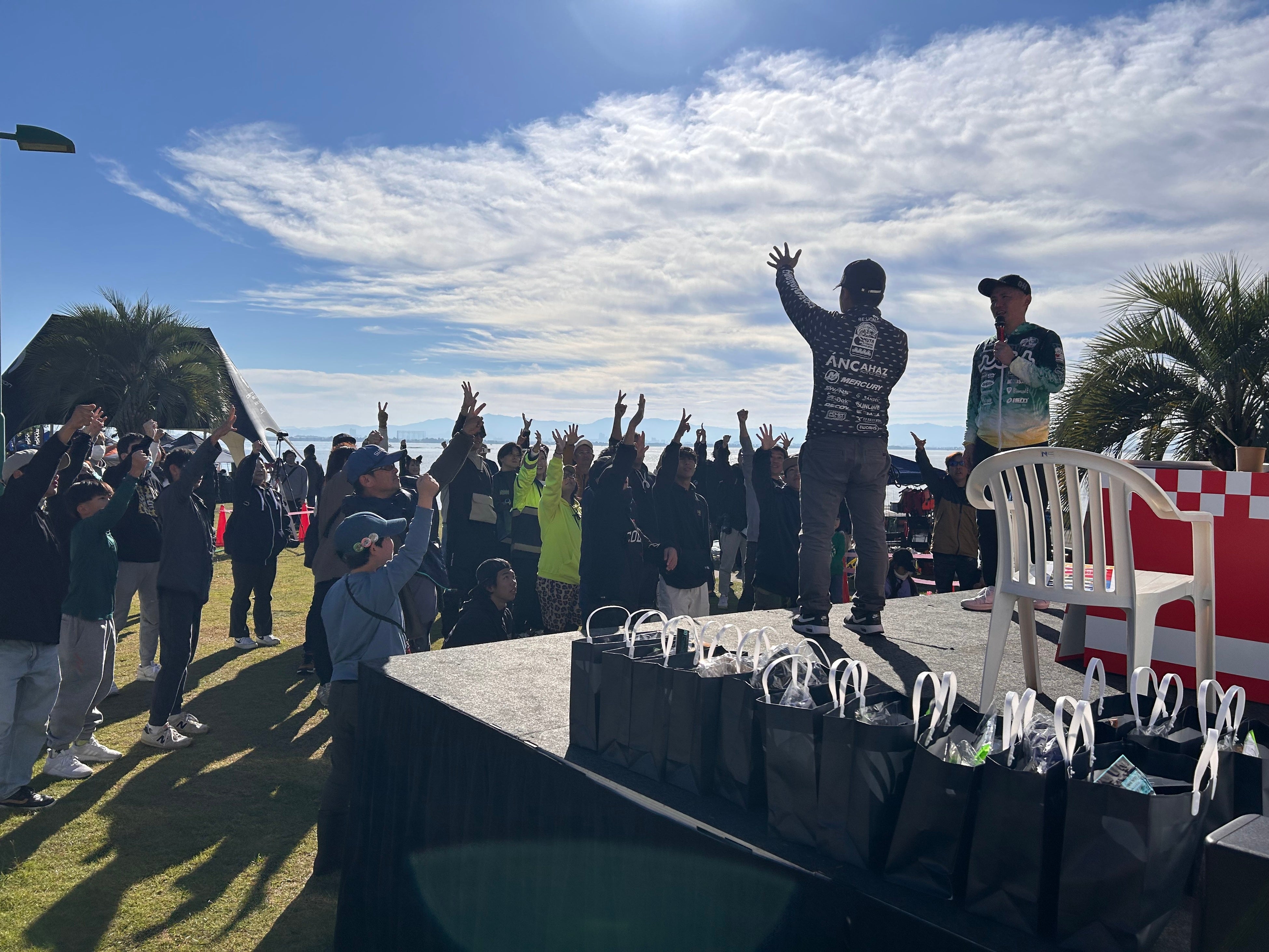会場では「muta MARINE Fishing」や「deps」など人気ブランドのブース出展のほか、アウトレット商品や大会限定グッズの販売も行われる予定です。大会の中で1番の盛り上がりを見せる公開計量ではメインMCの琵琶湖の塾長サトシン氏とお笑いコンビ「ファミリーレストラン」のしもばやし氏、サブMCの武田栄喜氏が会場の熱気をより一層引き出します。また、豪華景品を手に入れることが出来るじゃんけん大会や優勝者予想抽選会なども開催予定です。