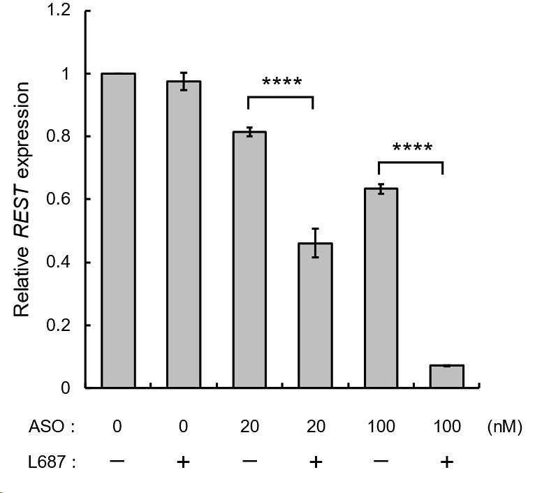 図2. REST標的ASOとL687存在下でのREST発現量評価