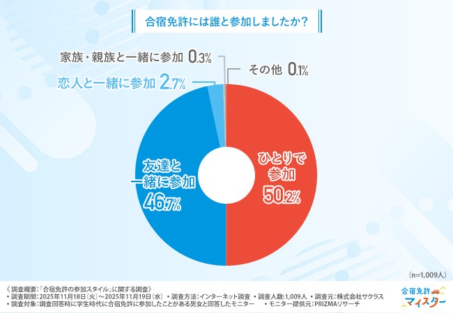 そこで今回、合宿免許比較サイト「合宿免許マイスター」(https://menkyo-meister.com/)を運営する株式会社サクラスは、学生時代に合宿免許に参加したことがある男女を対象に、「合宿免許の参加スタイル」に関する調査を行いました。
