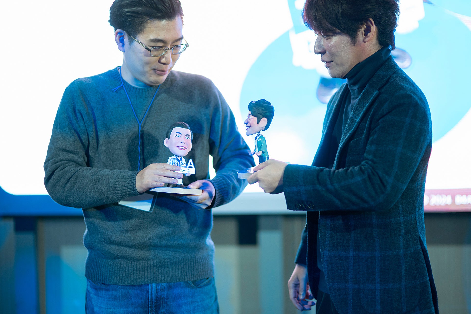 他のクリニック様へのご紹介や各種施策へのご協力、また機能アップデートや新機能に関するご意見・ご要望を積極的にくださったB4Aユーザー個人へ贈る賞です。記念品として、ご本人にそっくりなボブルヘッド人形を贈呈しました。