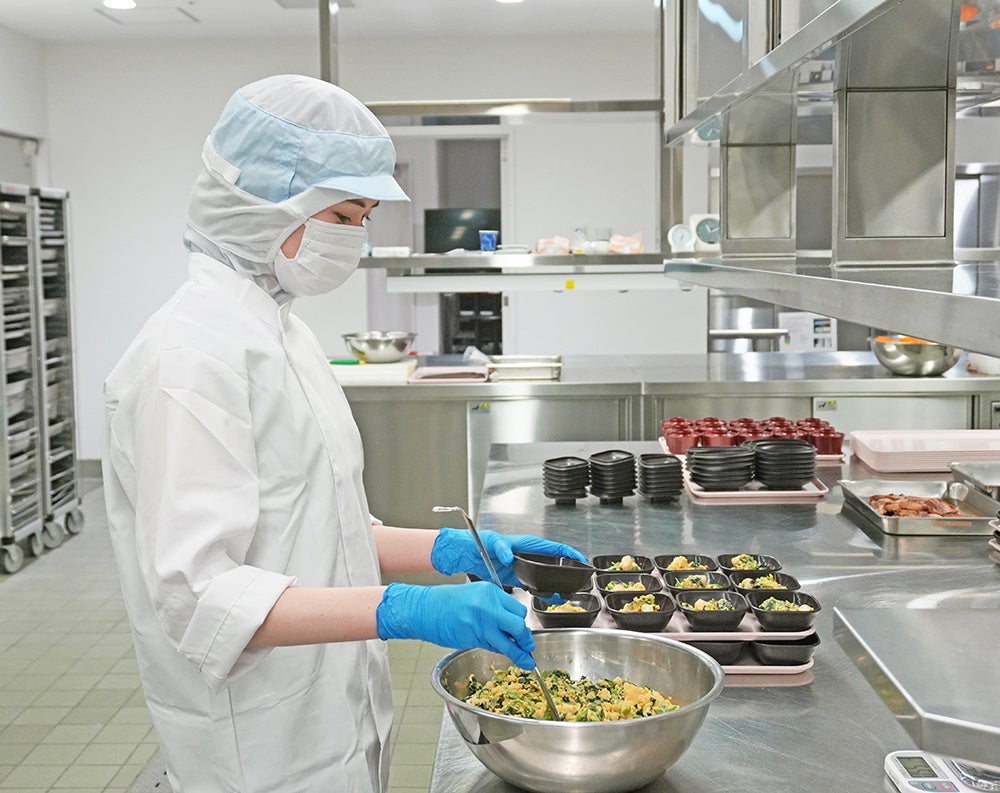 日本は超高齢化に伴い、高齢者施設が増える一方、人手不足という社会問題に直面しています。当社はそのような施設に向けて、完全調理済みの冷凍食品を提供することによって、施設では少ない人数で料理を提供することを可能にしています。