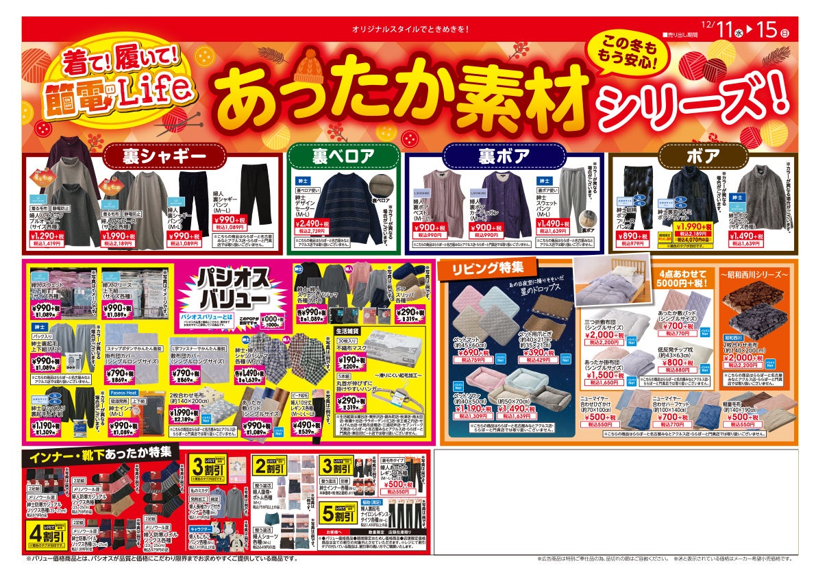 公式オンラインストア パシオスNet限定チラシ「モリモリSALE 歳末祭」では、
