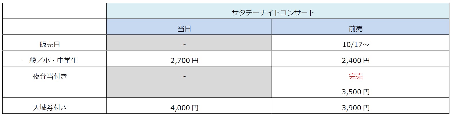 ※お弁当付きのサタデーナイトコンサート券は完売しております