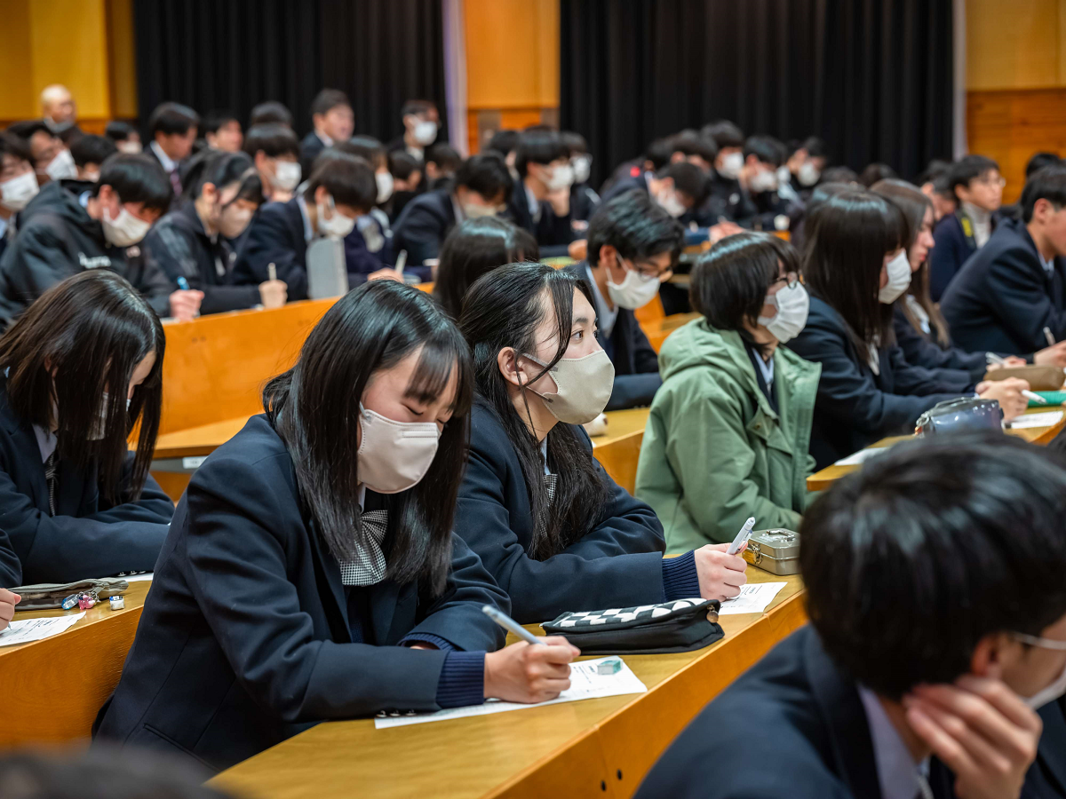 プロジェクト全体の最終回となる3月18日(月)は、高校生たちが「水の山」パートナー企業の実際の取り組みを見て学んだ上で、高校生自身の目線で未来の「サステナブルなまち北杜市」のために探究し、考えたアイディアを発表する3校合同の発表交流会を開催しました。
