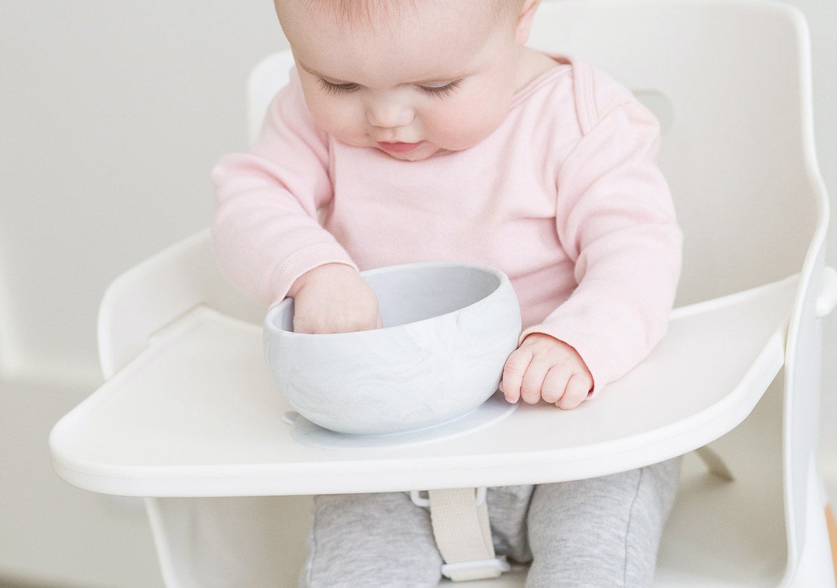 口に入れても安全な食品グレードシリコーンゴムで作られたベビー用ボウルです。ほどよい深さがあるため、汁ものやペースト状の離乳食も入れやすくなっています。最大の特徴はフラット状の底面部分。机にぴったりと吸盤状にくっつくので、倒したりこぼしたりしにくく、スプーンでもすくいやすく、また手づかみ食べにも安心です。
