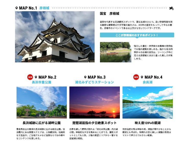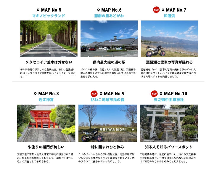 今年のスタンプラリースポットは、地元のライダーが琵琶湖周辺の王道観光スポットから、