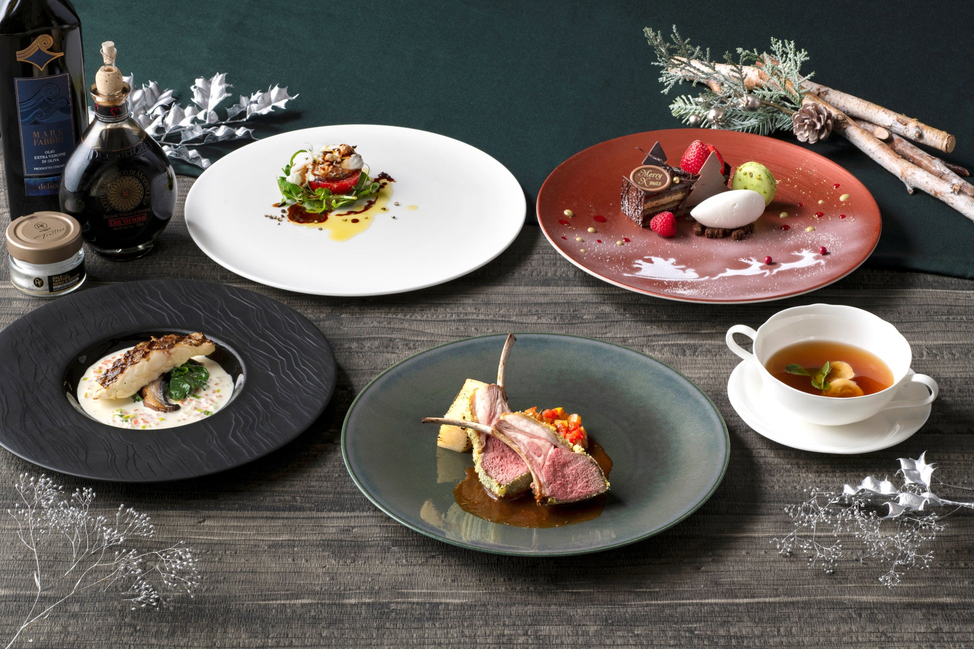 グリル&イタリアン「アチェンド」では、香り高いモリーユ茸のソースとともに国産牛のヒレ肉とフォアグラのソテーをご堪能いただけるコースを、中国料理「王朝」では特別な日にふさわしいオマール海老や上海蟹などを使った華やかな中国料理のコースをご用意。ビュッフェ料理「フォレストガーデン」では、ディナータイムのみで提供しているローストビーフをお好きなだけ召し上がっていただくランチビュッフェと、ポルチーニリゾットやサーモンなどをパイの間に巻き込んだ「サーモンクリビアック」などの特別メニューが並ぶディナービュッフェを、ロビーラウンジ「ラウンジ・オー」ではデザートビュッフェ「It’s My Christmas Tree(イッツ マイ クリスマスツリー)」とコラボレーションした、スパークリングワインなどのアルコール飲み放題付のディナービュッフェを開催します。また、テイクアウトデリ「フレッシュ・コネクション」では、客室でお楽しみいただけるクリスマスパーティーセットが1日30セット限定で登場します。