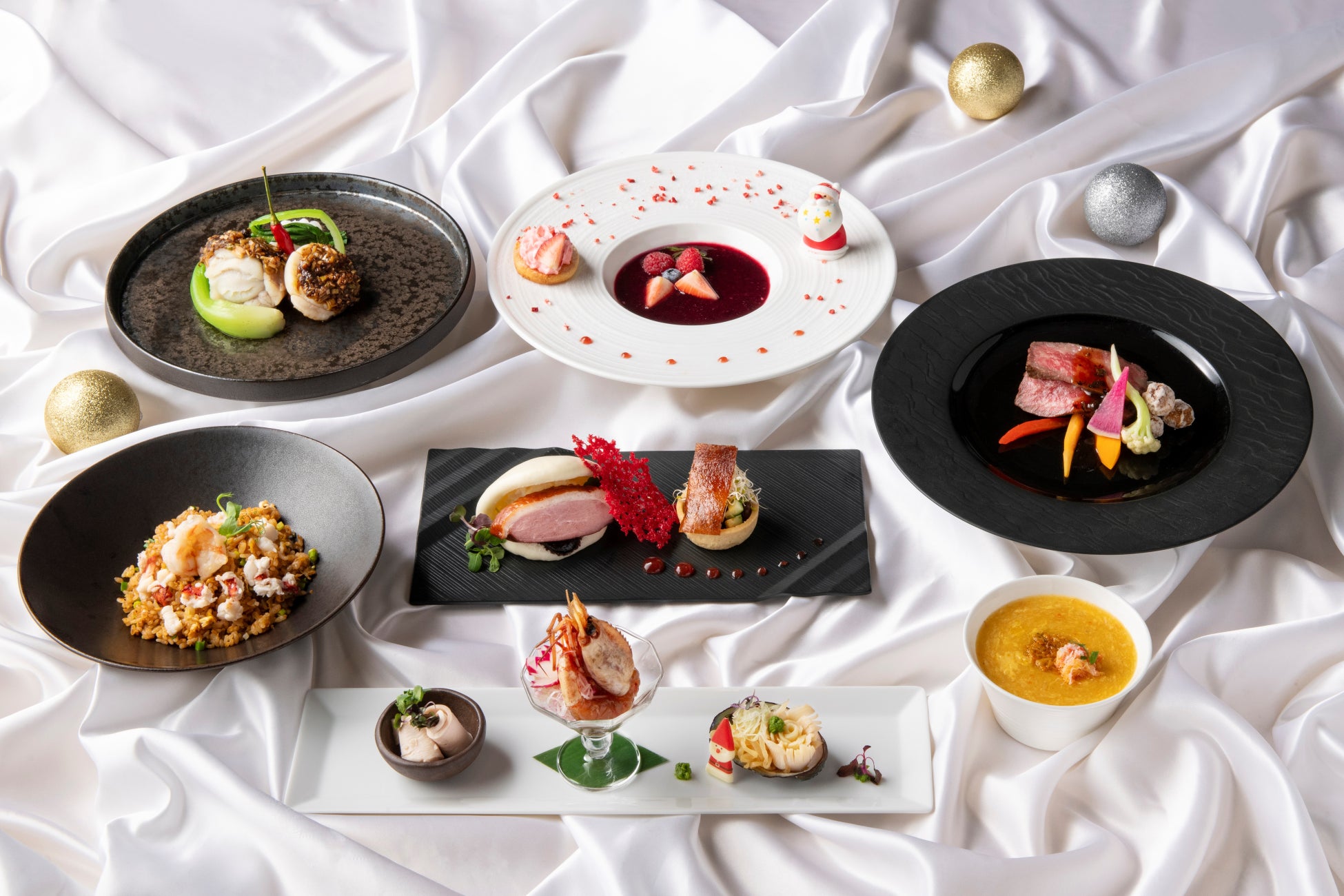 ディナーでは、クリスマスを彩る前菜や海老の旨味が凝縮されたアメリケーヌソースを合わせた炒飯などを堪能する10,000円のコースと、コニッシュジャックのひれ入り上海蟹のロワイヤルや和牛サーロインとマカダミアナッツの十三香粉炒めなどが味わえる、特別な日にぴったりな14,000円のコースをご用意いたしました。