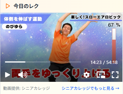 「今日のレク」では、同じくEEFULホールディングスが運営する介護施設向け動画サービス「シニアカレッジ」のコンテンツから、体操、脳トレ、クイズなど、現場ですぐに活用できる動画を毎日1本、無料で視聴可能です。(EEFUL DBにログインすることでフル視聴ができ、未ログインの場合でも冒頭30秒の視聴が可能。)