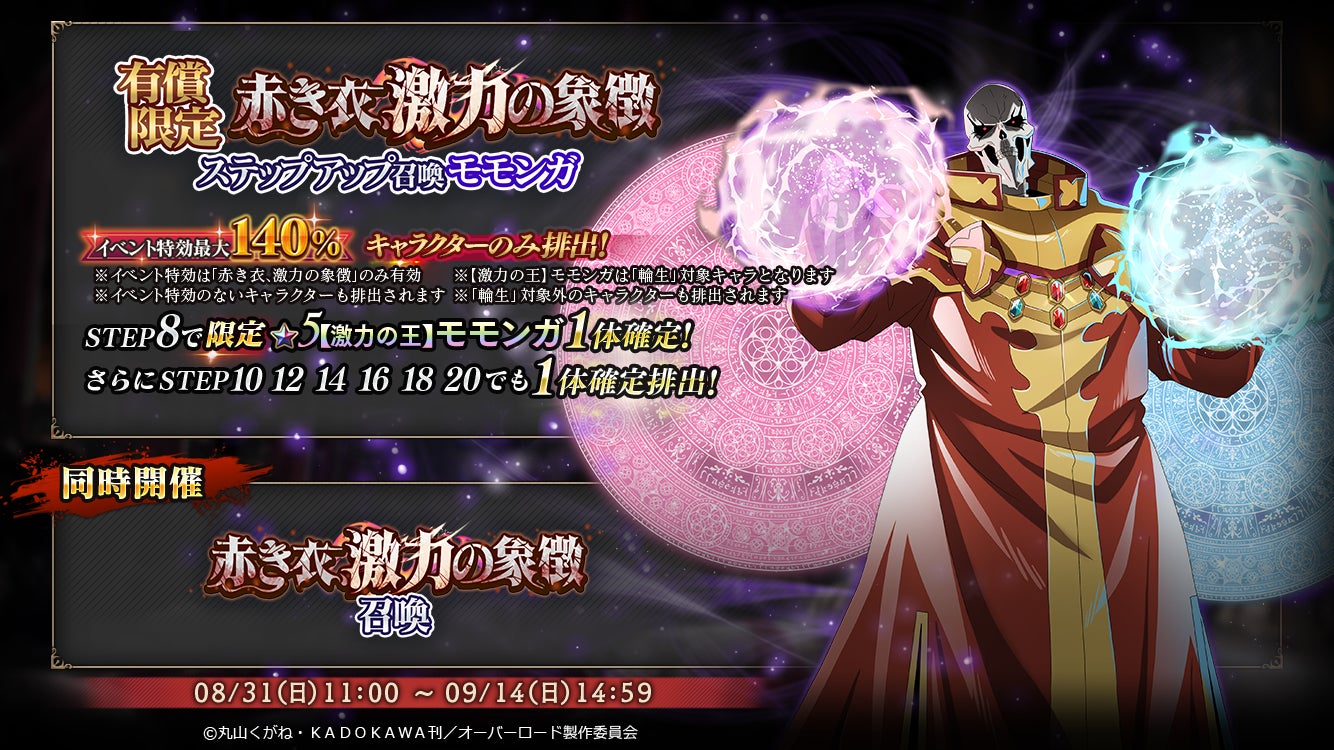 8/31よりイベント『『赤き衣、激力の象徴』』を実施!召喚では『★5【激力の王】モモンガ』が登場します!