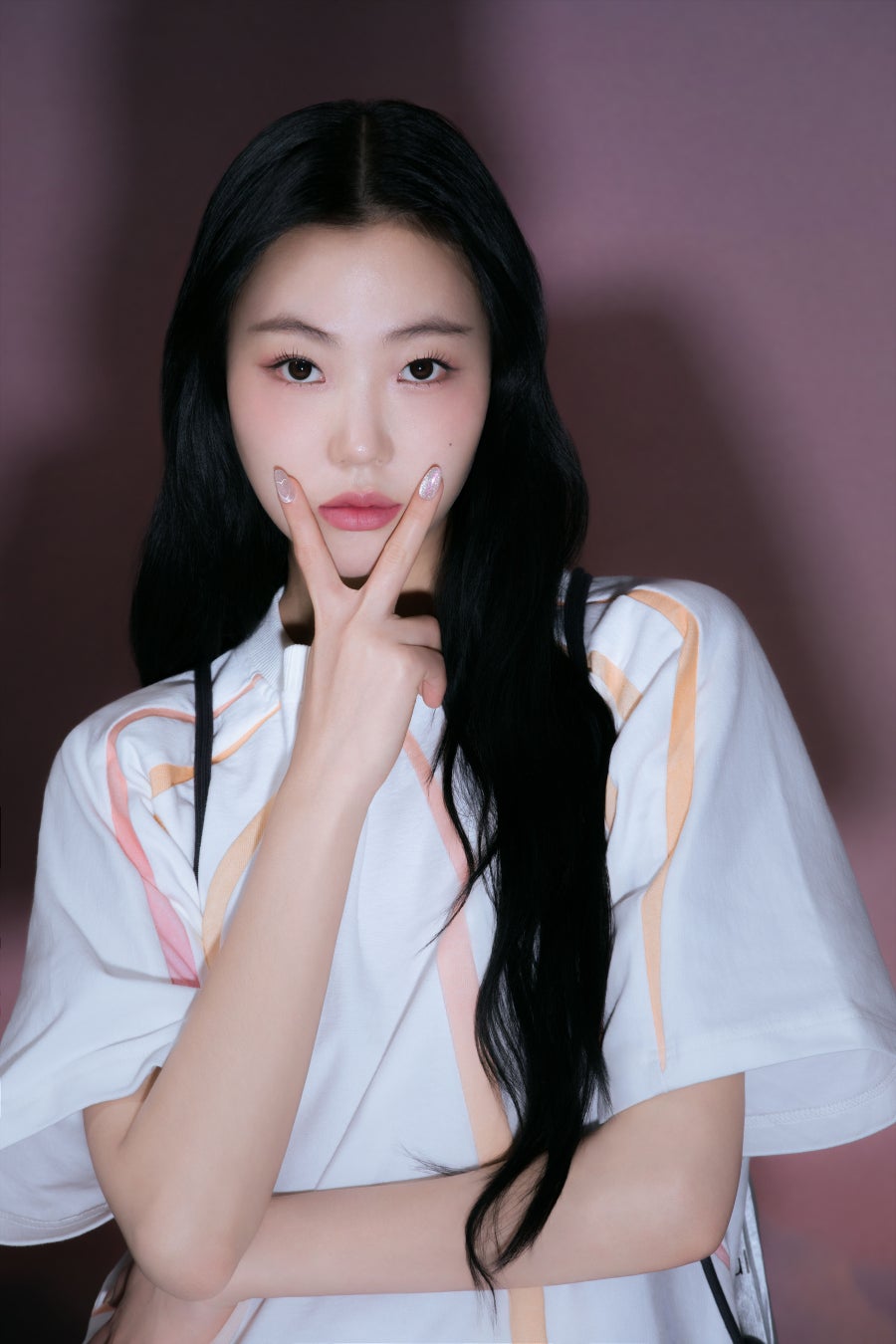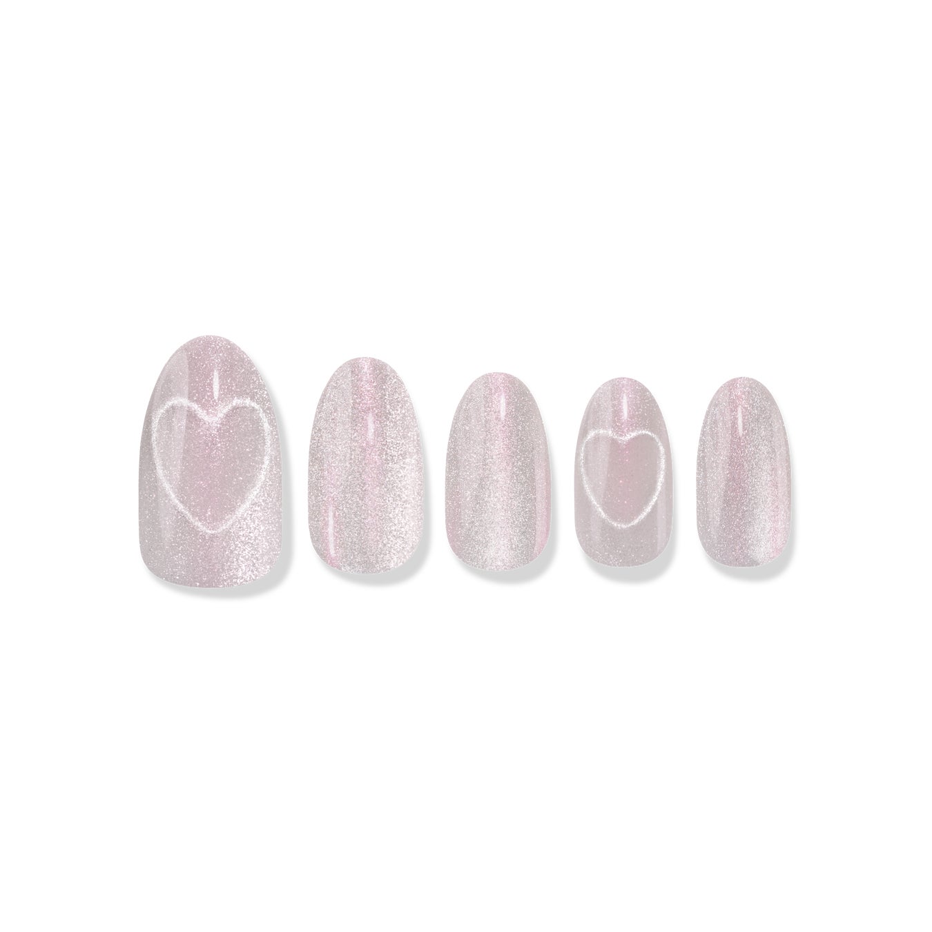 フィンガースーツのシグネチャーデザインである水光ネイルに愛らしさをたっぷりプラス。 角度によってほのかに形が変わるハートシェイプマグネットジェルが高級感のあるポイントになります。
