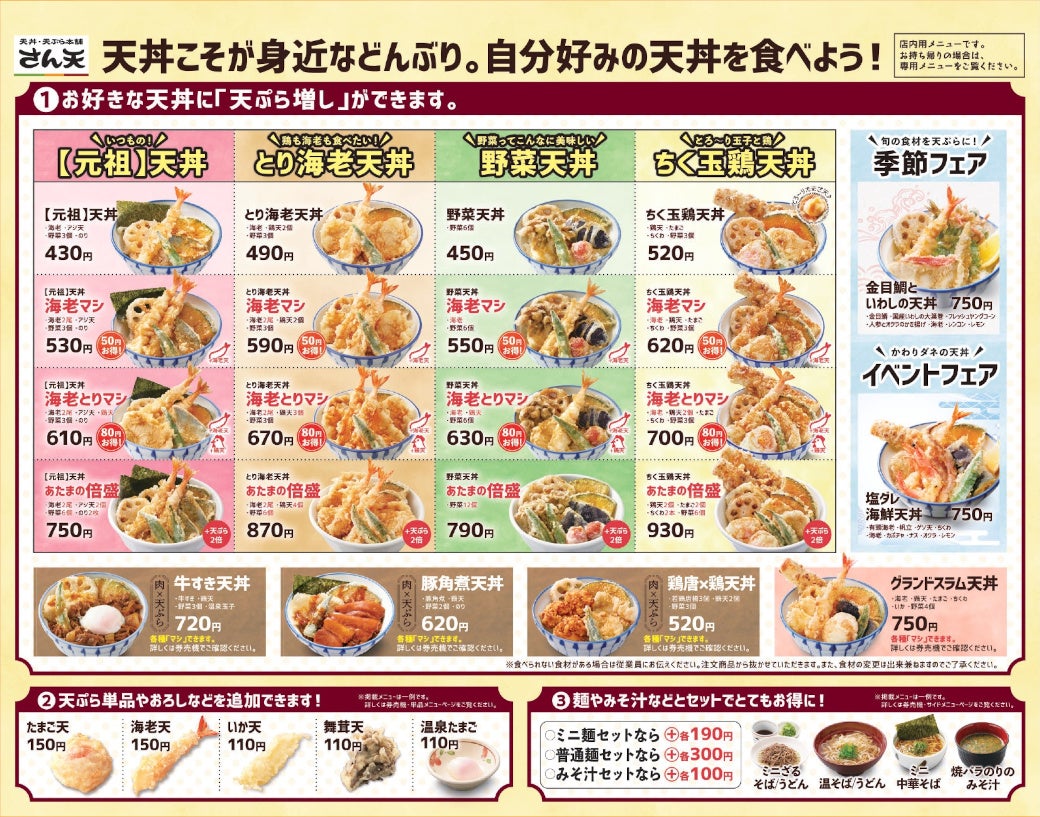 「天丼・天ぷら本舗 さん天」公式Twitter https://twitter.com/TendonTempuraST/