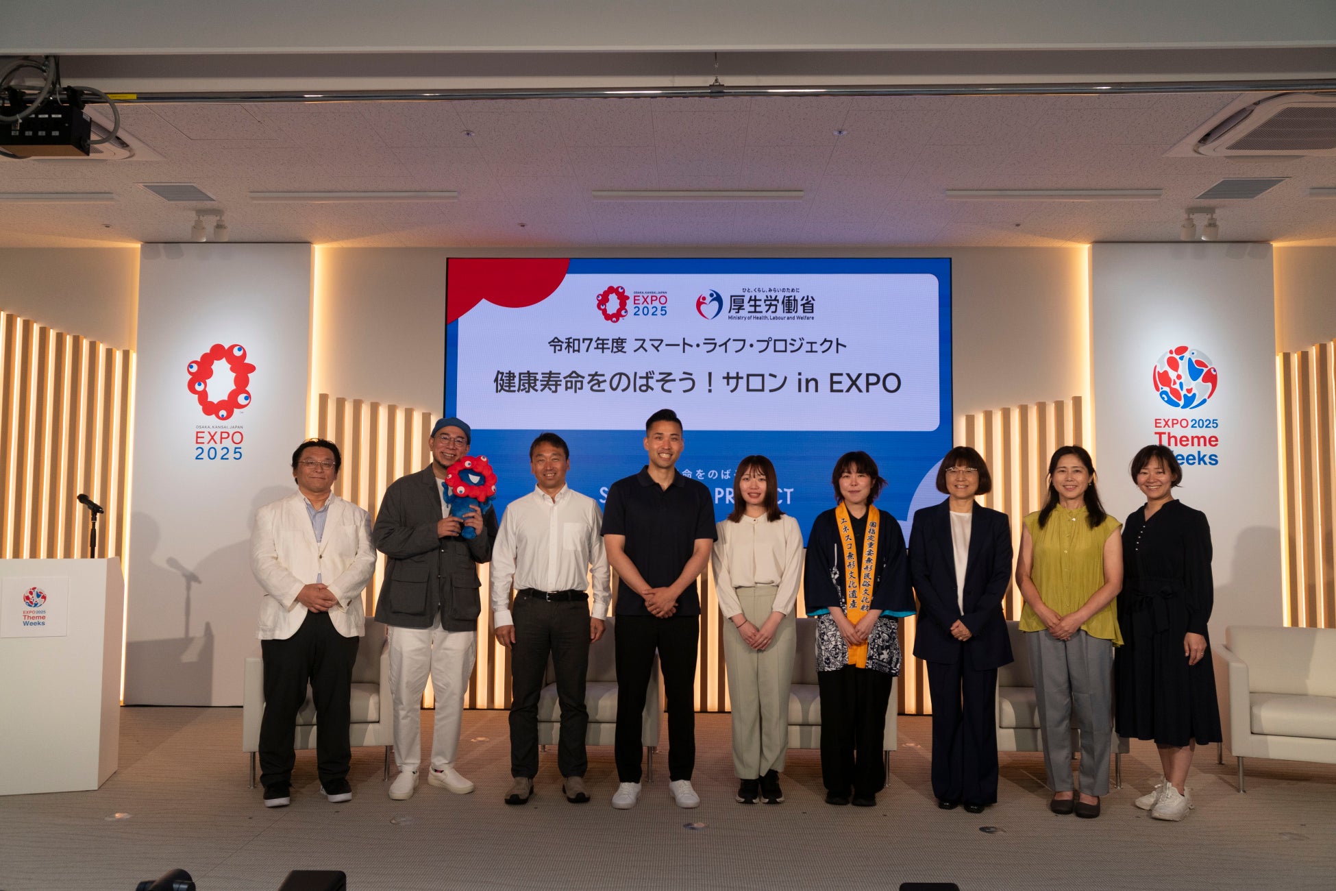 厚生労働省が主催する「スマート・ライフ・プロジェクト(SLP)」では企業・団体・自治体が連携し、国 民の健康寿命の延伸を目指した実践的な活動を広げるため、事例共有・交流の場「健康寿命をのばそう!サロン」を全国で展開しています。このたび令和7年度の第一回サロンとして、2025年6月22日(日)に大阪・関西 万博テーマウィークスタジオ(大阪府大阪市此花区・夢洲)にて「令和7年度健康寿命をのばそう!サロン in EXPO」開催しました。