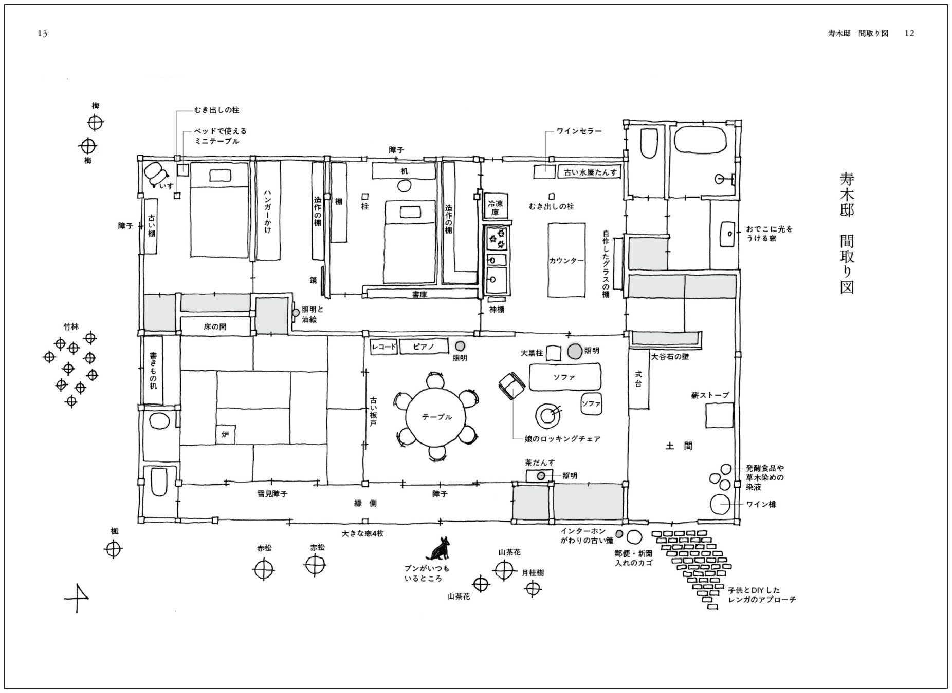 「私が暮らしているのは、ぶどうの産地として知られる里山に建つ、築百三十年の古民家です。四階建てに相当する大きな家の一階部分を、平屋として使っています。初めて家の内部に入ったとき、木の骨格の美しさに、思わず、わあー声にならない太い息が漏れました。長い年月の間にやや傾いていたとはいえ、釘を使わずに栗材で作られた家は、職人の手仕事の賜物です。壊してしまったら、このような家は二度と作れないでしょう。次の百年に向けて、手を加えること。それが私の希望でした。[…]十八か月間に及んだ改修工事を経て、現代の生活に合うように整えられたこの家は、女が建てた、ささやかな数寄の住まいです。」(本文より)