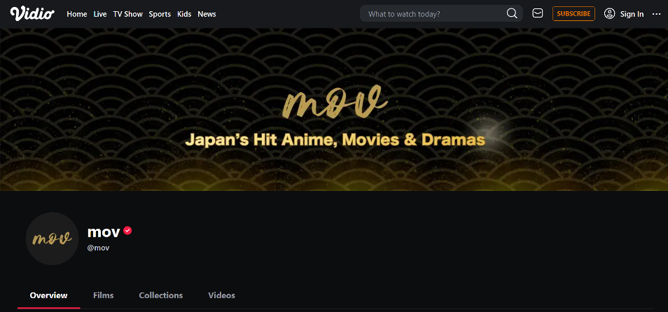 Vidio上の公式チャンネル「mov」は、日本発コンテンツに特化した専門チャンネルです。