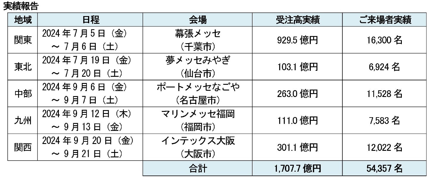 ユアサ商事株式会社(東京都千代田区、代表取締役社長:田村 博之)は、販売先様の会である「やまずみ会」様、仕入先様の会である「炭協会」様とともに、2024年7月から9月までの期間に、関東、東北、中部、関西、九州の5か所において展示会「つなぐグランドフェア2024」を実施いたしました。ご来場いただきました54,357名の皆さま、並びにご支援・ご協力をいただきました関係各位の皆さまに心より御礼申し上げます。以下、結果のご報告をいたします。