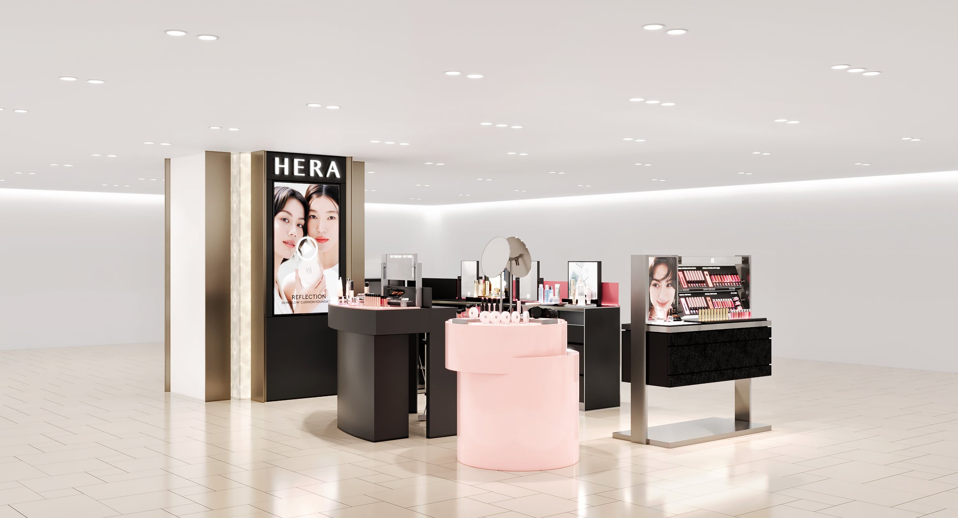 ソウルの百貨店カウンターを再現したスペースで、HERAの世界観を体感しながら、ソウル発のトレンドメイクをお楽しみください。
