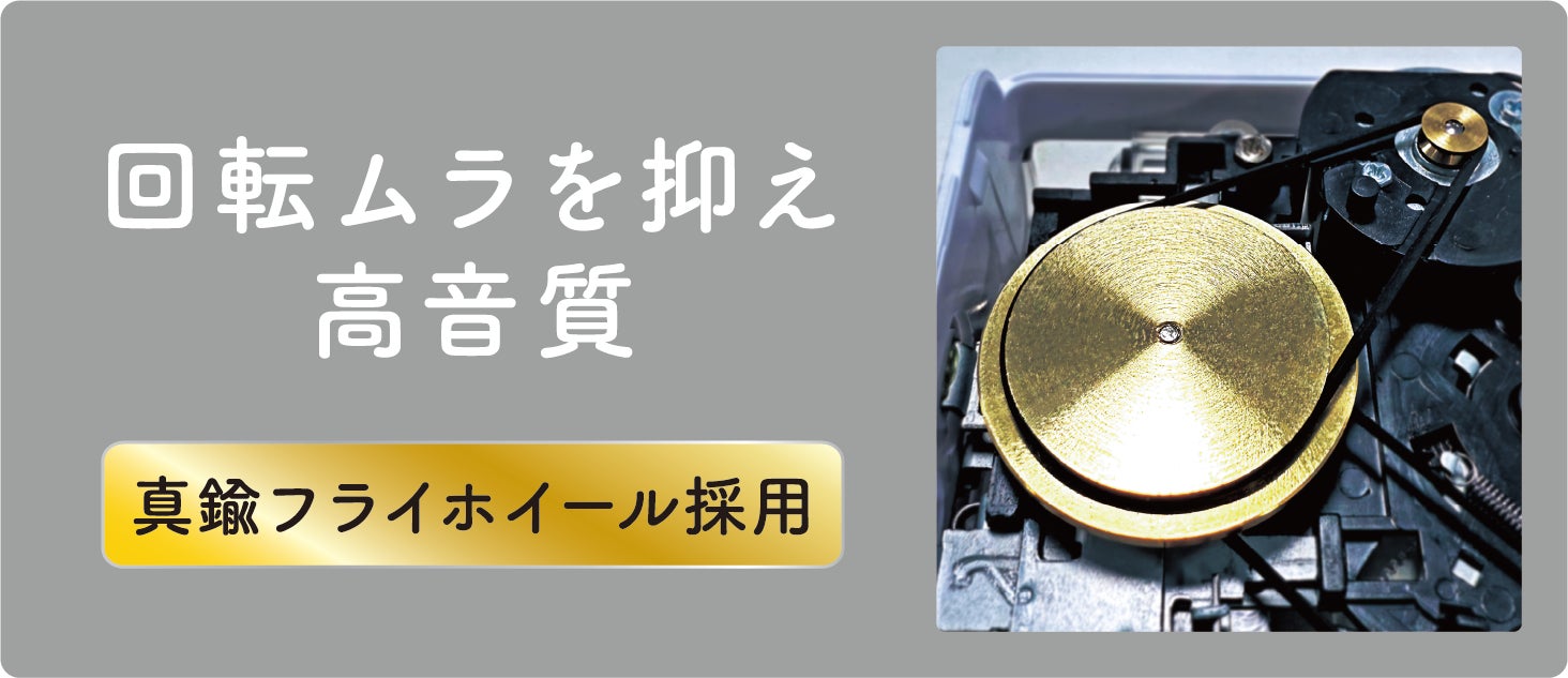 テープ⾛⾏を安定させるフライホイールに真鍮(しんちゅう)を採⽤、回転ムラを抑えて⾼⾳質