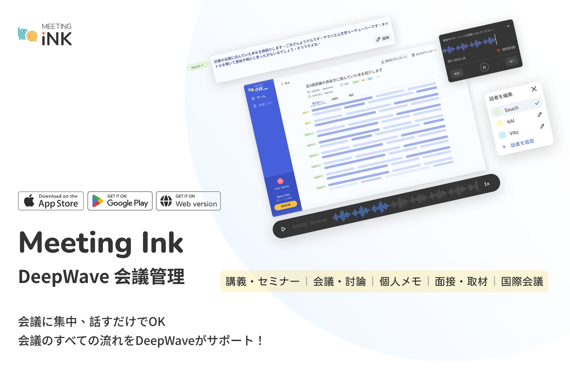 Meeting Inkは、リアルタイム音声テキスト変換、多言語翻訳、話者識別、カスタマイズ可能なAI要約などの機能を提供し、幅広い業界ニーズに対応する柔軟なカスタマイズサービスを備えています。さらに、日本語インターフェースや日本のビジネス文化に適応した最適化を施し、企業の会議効率向上と重要情報の可視化を支援します。DeepWave は、その AI 音響技術における過去の技術力が YAMAHA を含む日本の複数企業から高く評価されており、日本市場への参入に向けて強固な基盤を築いています。
