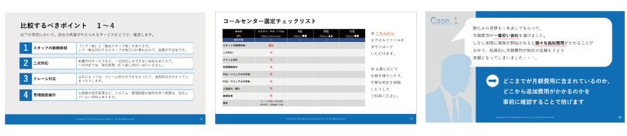 コールセンター会社の選定時に使える比較チェックシートもありますので、ぜひダウンロードしてご活用ください。