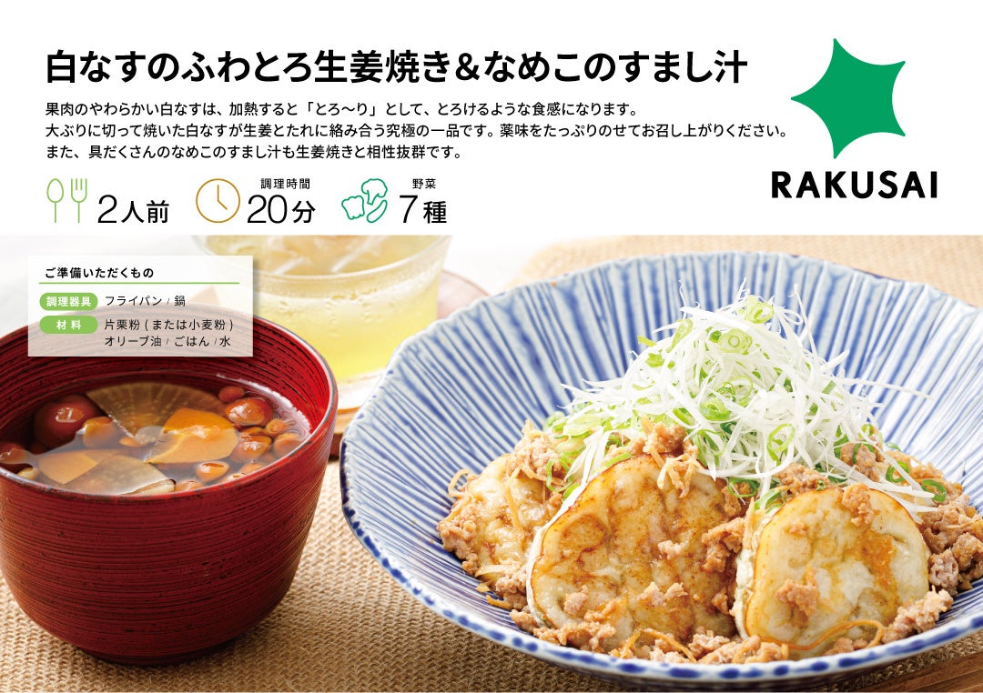 “白なすのふわとろ生姜焼き&なめこのすまし汁”RAKUSAI 7/8和のごはんセット販売