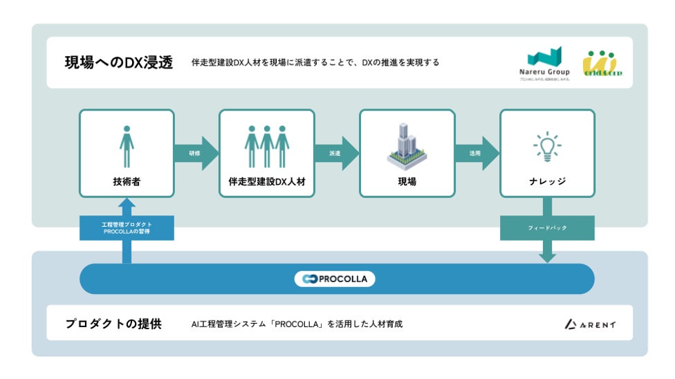 「暗黙知を民主化する」を掲げる当社にとって、プロダクトの真価が現場の隅々まで定着することは、ミッションの実現に向けて非常に重要だと考えています。建設現場のDXを真に加速させるには、高度なAI技術だけでなく、実務に寄り添い伴走できる「人の力」が欠かせません。ナレルグループ様との提携を通じて、AI活用人材の育成を強化することで、幅広い現場ネットワークと人材育成の実績を持つナレルグループ様と共に、全国の現場へ『PROCOLLA』の価値を直接届ける体制が整いました。この強力な連携を通じて、建設業界の構造的課題を解決し、生産性向上の新たなスタンダードを共に築いてまいります。