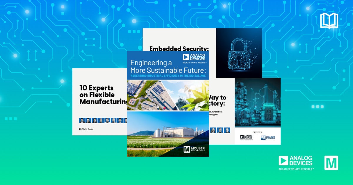 「Engineering a More Sustainable Future: Redefining Industrial Efficiency in the Digital Age」では、マウザーとAnalog Devicesの専門家が産業効率に関する幅広いトピックを解説しています。本eBookには、エンコーダ付モーターの詳細な分析、シングルペア・イーサネット状態監視振動センサ、スマート工場の実現に向けたRTDをベースとする温度計測センサの再設計についてなど、10以上の記事が掲載されています。また、いくつかの章には有益なインフォグラフィックやAnalog Devicesの関連製品にアクセスできるリンクも含まれています。