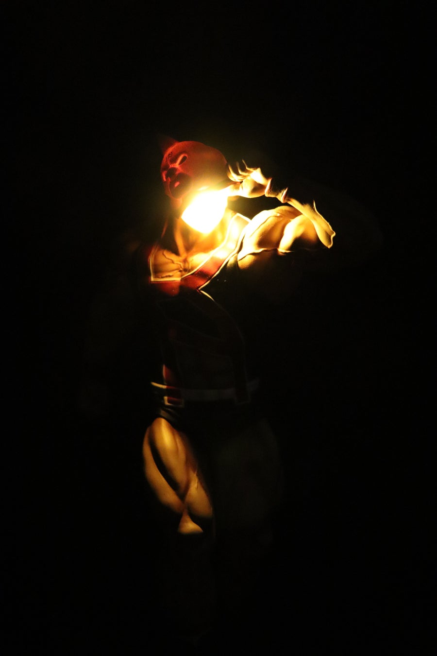 ドブ川を浄化し、ビビンバの傷を癒やし、数々の超人を蘇らせる力を持つ『奇跡の光』フェイスフラッシュを放つ姿を、頭部にLED発光ギミックを搭載することでリアルに再現!