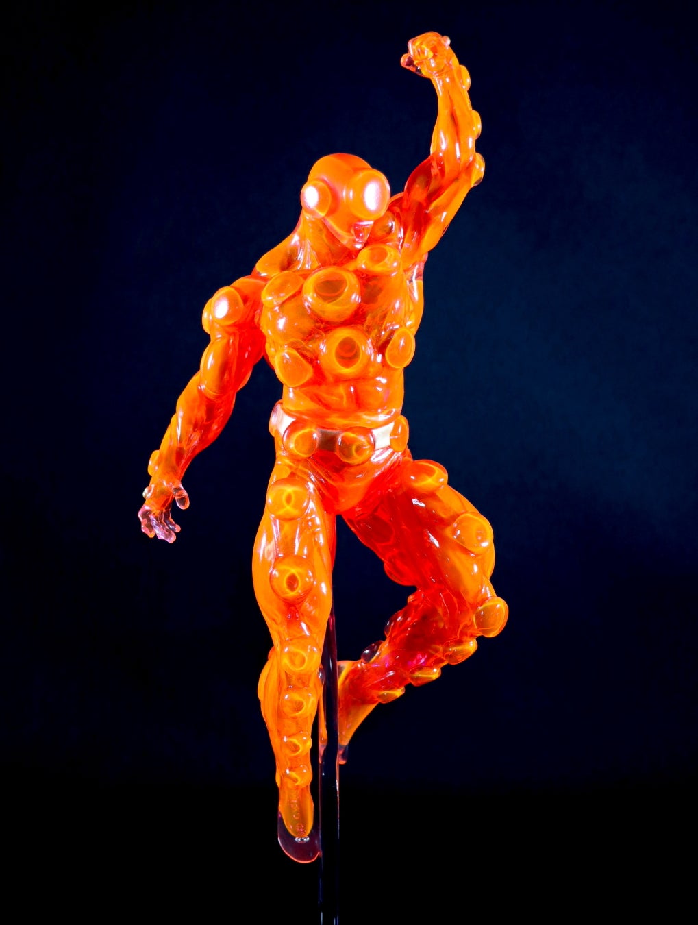 ペインマン体表を構成する無数のエアバッグを再現したクリアボディに、絶妙な透明感が残るよう蛍光色の塗料を流し込む調整の難しい技法で、ジャンクマンの猛攻を受け、身体が熱で状態を見事に再現!