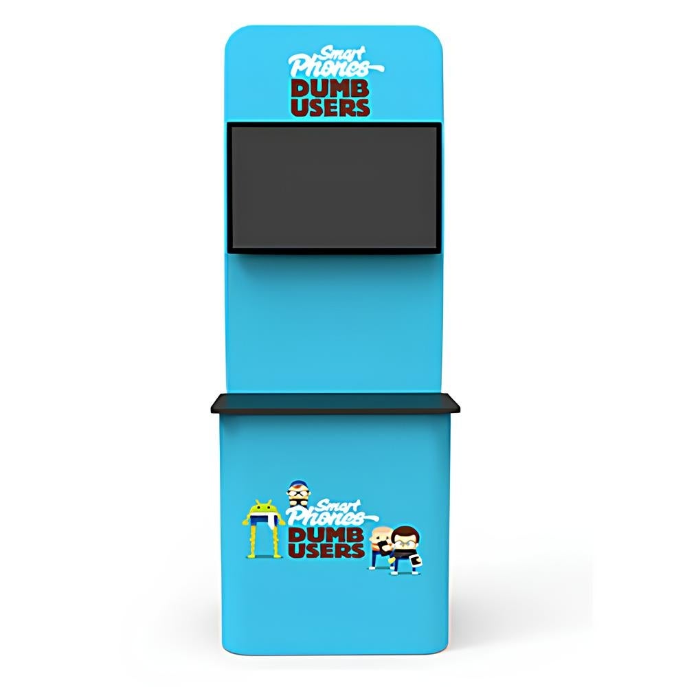 LEDが内蔵されていて美しく光るカウンターテーブルや、木製のトップボードを乗せて使えるもの、キャリーケースになるもの、など側面にはオリジナルの印刷ができて、印刷面は何度も交換可能なので、本体があればすっとご使用していただけます。