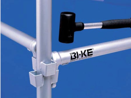 「ビケ足場」は、当社が1980年に開発した日本初のくさび緊結式足場です。それまでの住宅用足場は、ほとんどが丸太等で組まれており、安全性・作業性・耐久性など、多くの問題を抱えていました。極めてシンプルな構造である「ビケ足場」の誕生により、足場作業の安全性や作業性が飛躍的に向上しました。