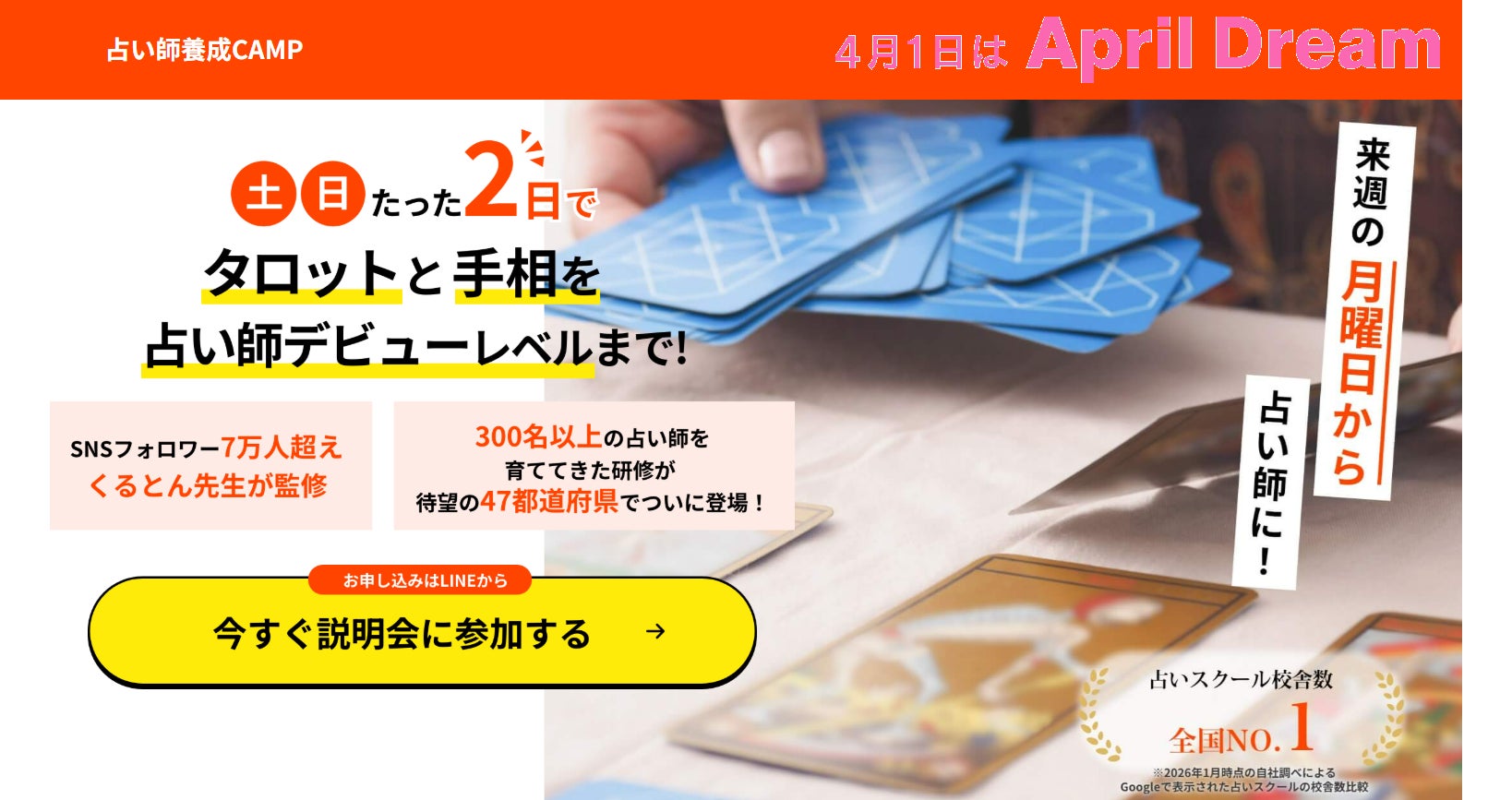 当社は、4月1日を夢を発信する日にしようとするApril Dreamに賛同しています。このプレスリリースは「占い師養成CAMP」の夢です。