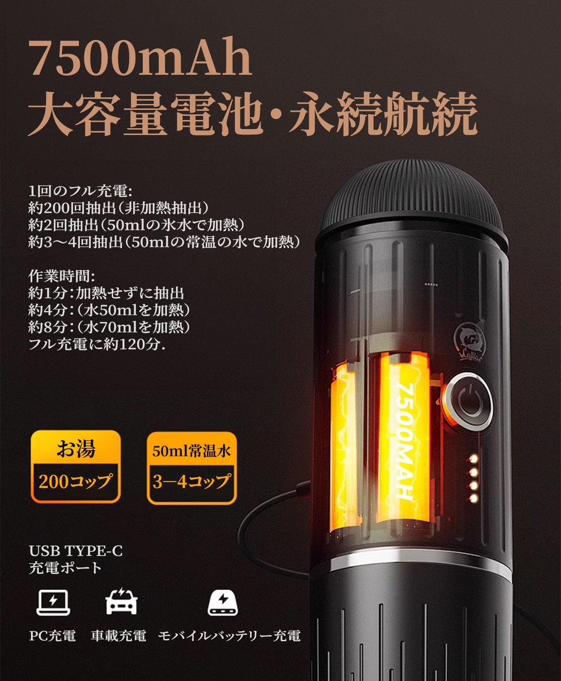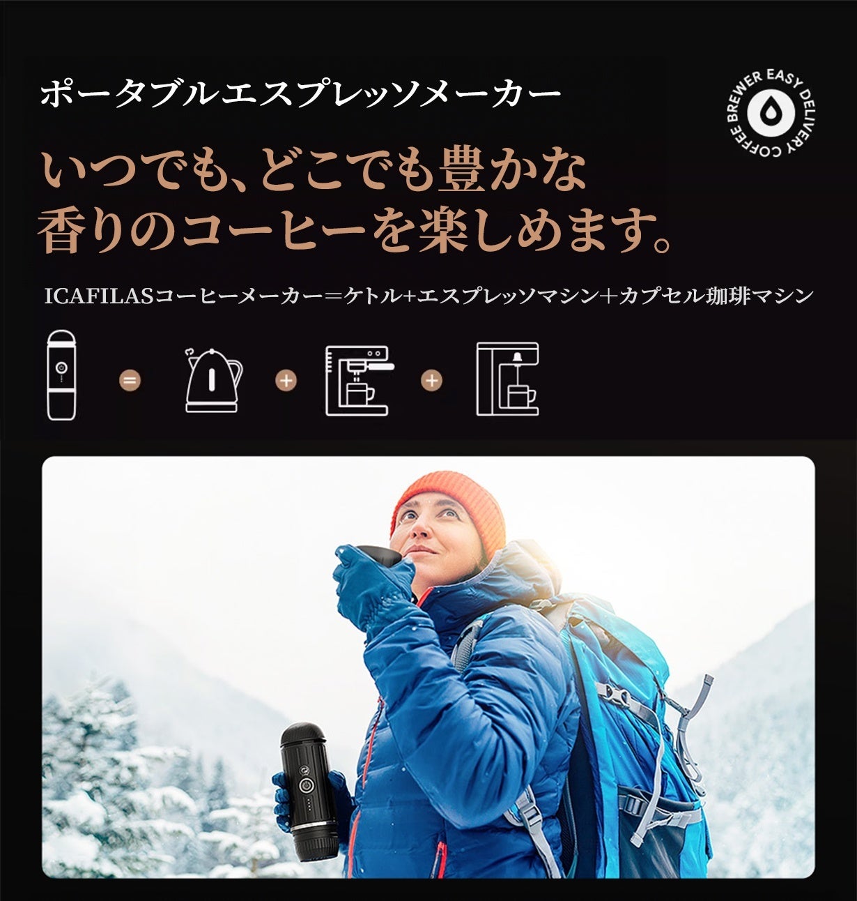 いつでもどこでも、冷水加熱可、極上のエスプレッソを - 携帯型コーヒーメーカー