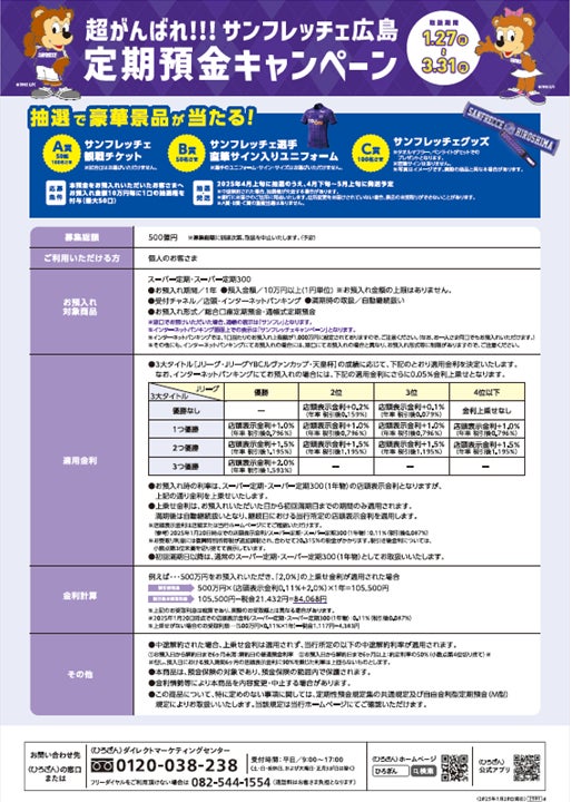 「超がんばれ!!!サンフレッチェ広島 定期預金キャンペーン」の実施について