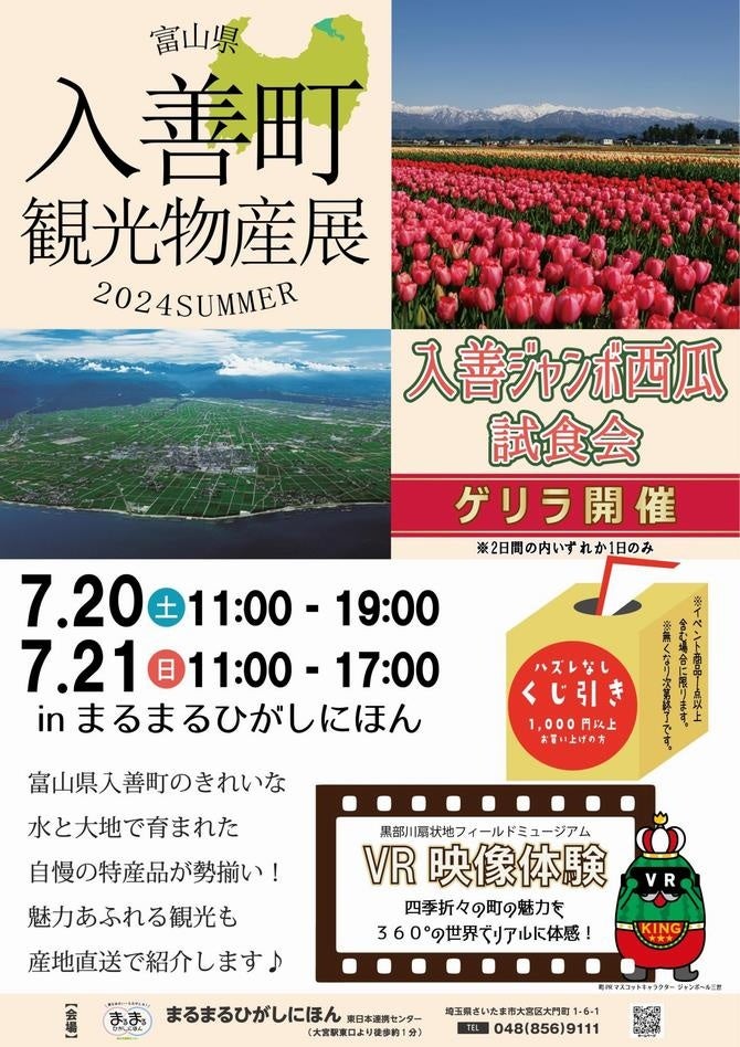 7月20日(土)・21日(日)の2日間限定イベント!まるまるひがしにほんで「富山県入善町観光物産展」を開催します!