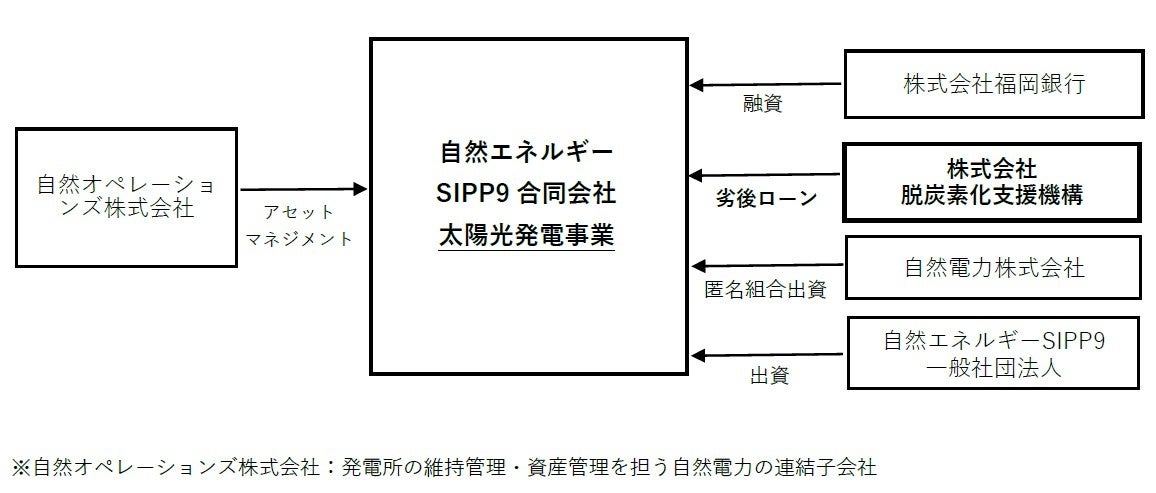 株式会社脱炭素化支援機構(代表取締役社長:田吉禎彦、英語名称:Japan Green Investment Corp. for Carbon Neutrality(JICN))は、自然電力株式会社(本社:福岡県福岡市、代表取締役:磯野謙、川戸健司、長谷川雅也、以下「自然電力」)が手掛ける太陽光発電事業(以下「本事業」)に対して、支援(劣後ローンの供与)を決定し、実行しました。