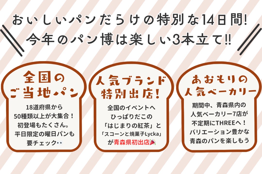 【パンを楽しみまくる14日間!】全国のご当地パン&青森の人気ベーカリー&青森県初出店ブランドが大集合するPOPUPが6/3(火)開幕!|#THREEパン博