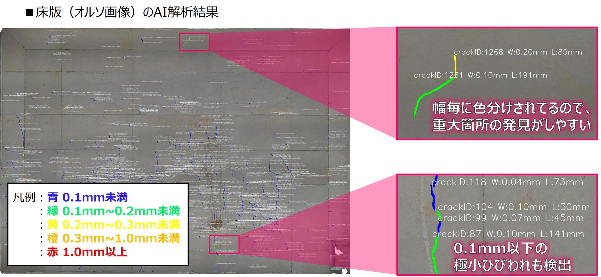 ・見落としリスクの低減による点検品質の向上 (ひびわれ幅0.05mmから抽出可能)