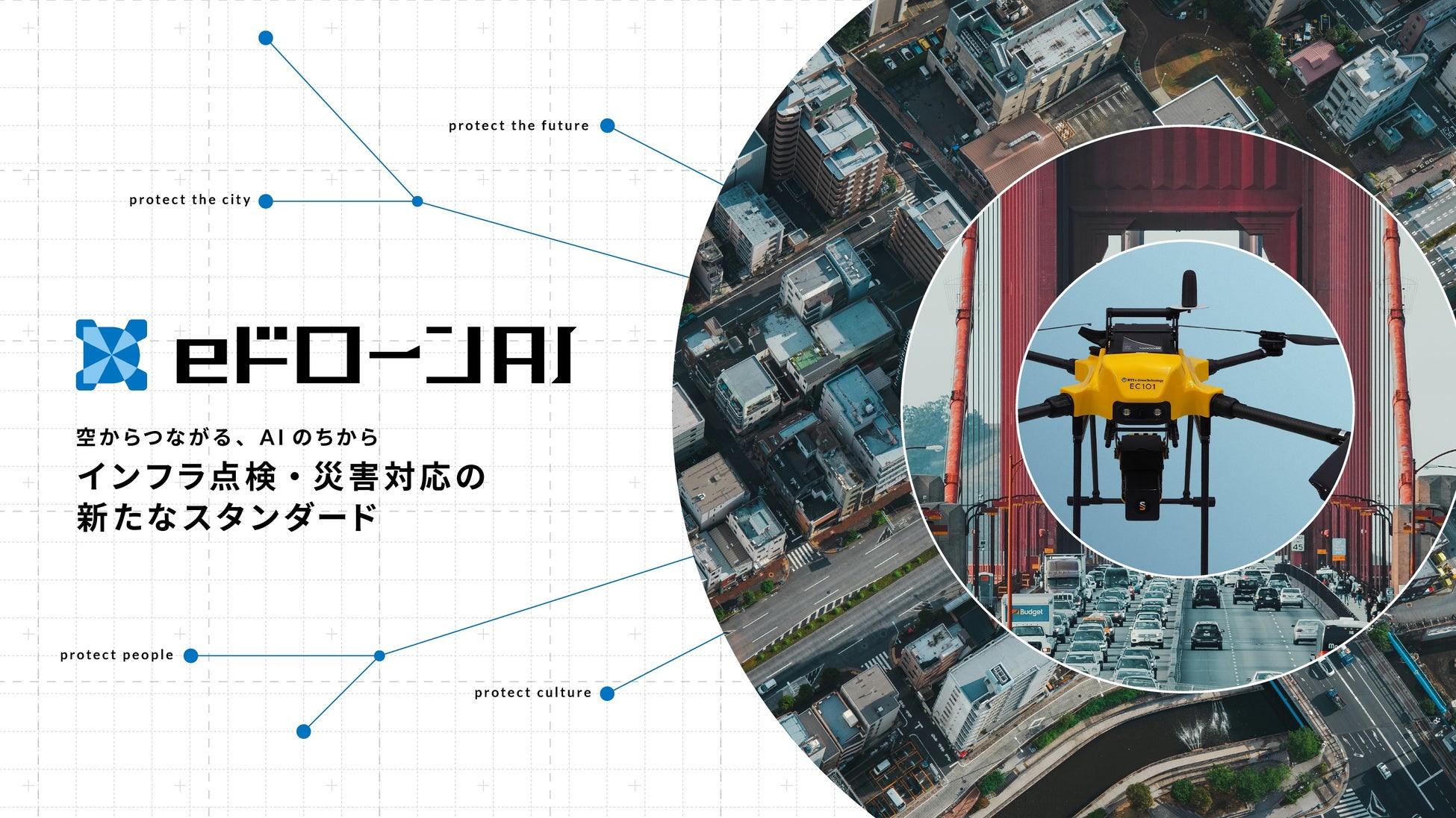 損傷検出AIサービス「eドローンAI」(サービスページ:https://www.nttedt.co.jp/edrone-ai)は、コンクリート構造物の表面画像をAIで解析し、ひびわれや劣化損傷を高精度に検出する点検支援サービスです。(国交省 点検支援技術性能カタログ技術番号:BR010076-V0126)