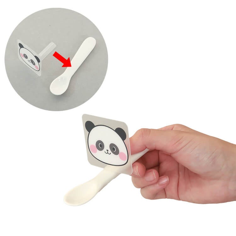 スプーンとチャームを一緒に持って使用することで、見た目で興味を引き、楽しく食事をする補助となります。